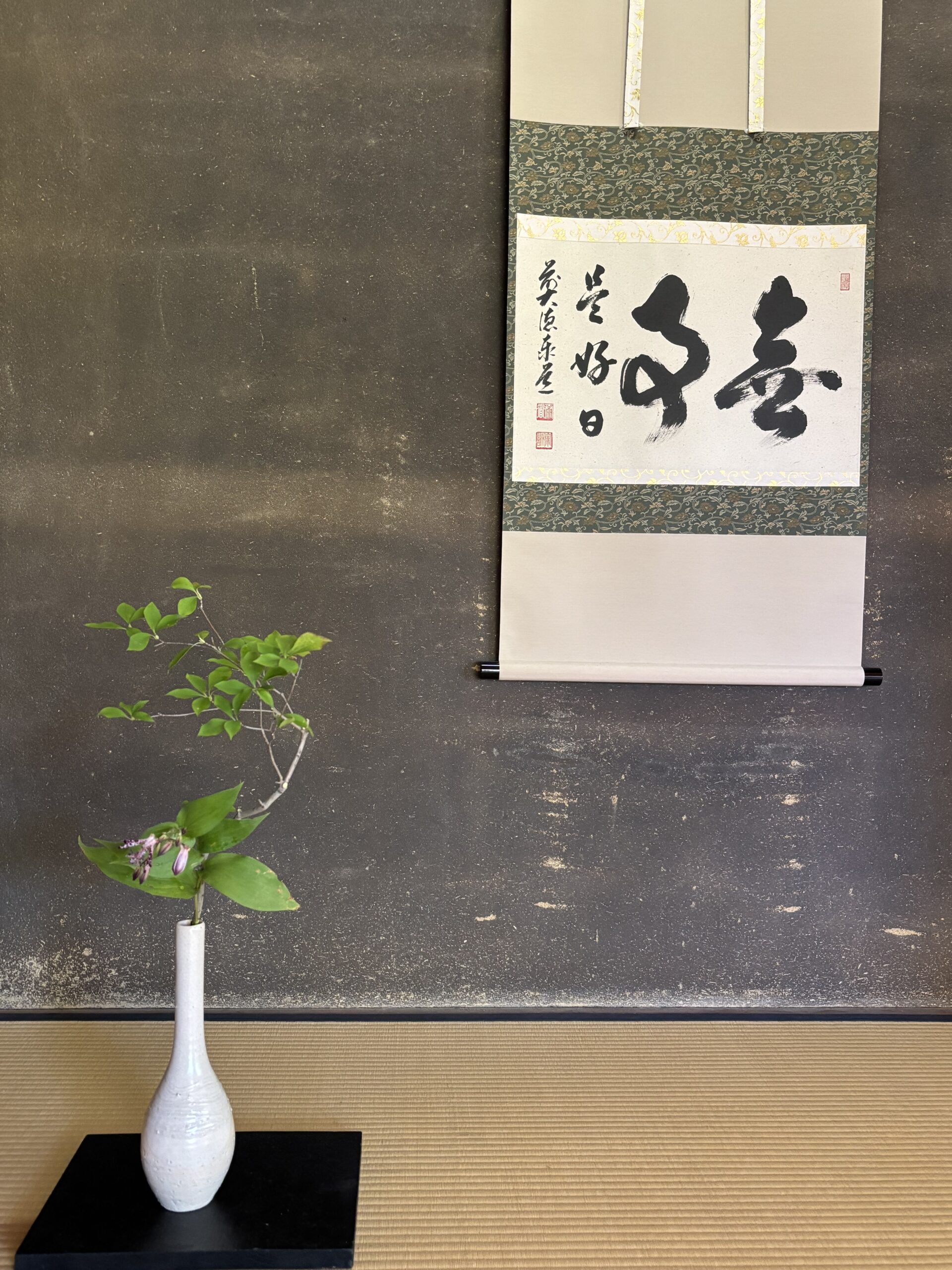 水を打った露地に柔らかな木漏れ日が差し込んでいます。